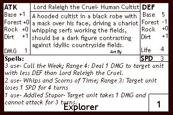 The army that Gavin uses is much more offensive, with 3x Acidspitter and 2x Arm of the Kel. My army tries to play defensively, and as such has more casters, such as the Apprentice Cryomancer. His explorers are much more concerned with support roles, whereas I am using my explorers as the warriors that I don't include among my assistants (yes I am aware that Tesl has basically no attack, but he spawns my army forward) Anyway, as it is getting late, I will try to update these again soon, but now guarantees.