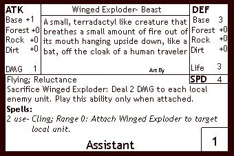 3x Winged Exploder- This can deal 2 damage to each local enemy unit when it attaches. this generally causes 2 units to each lose 2 life, which, combined with spell-casters, spells doom for most enemy assistants